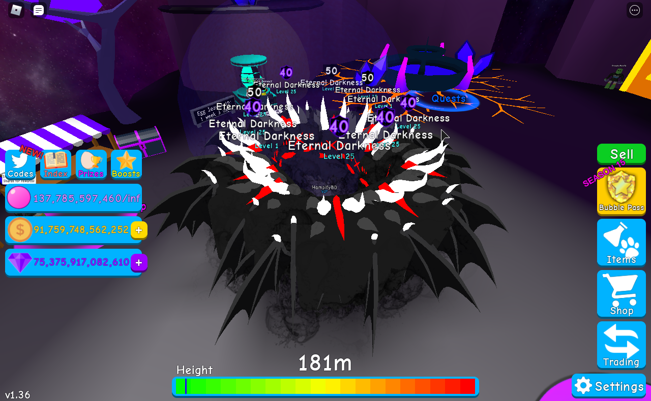 Making A Shiny Eternal Darkness In Bubble Gum Simulator Youtube
